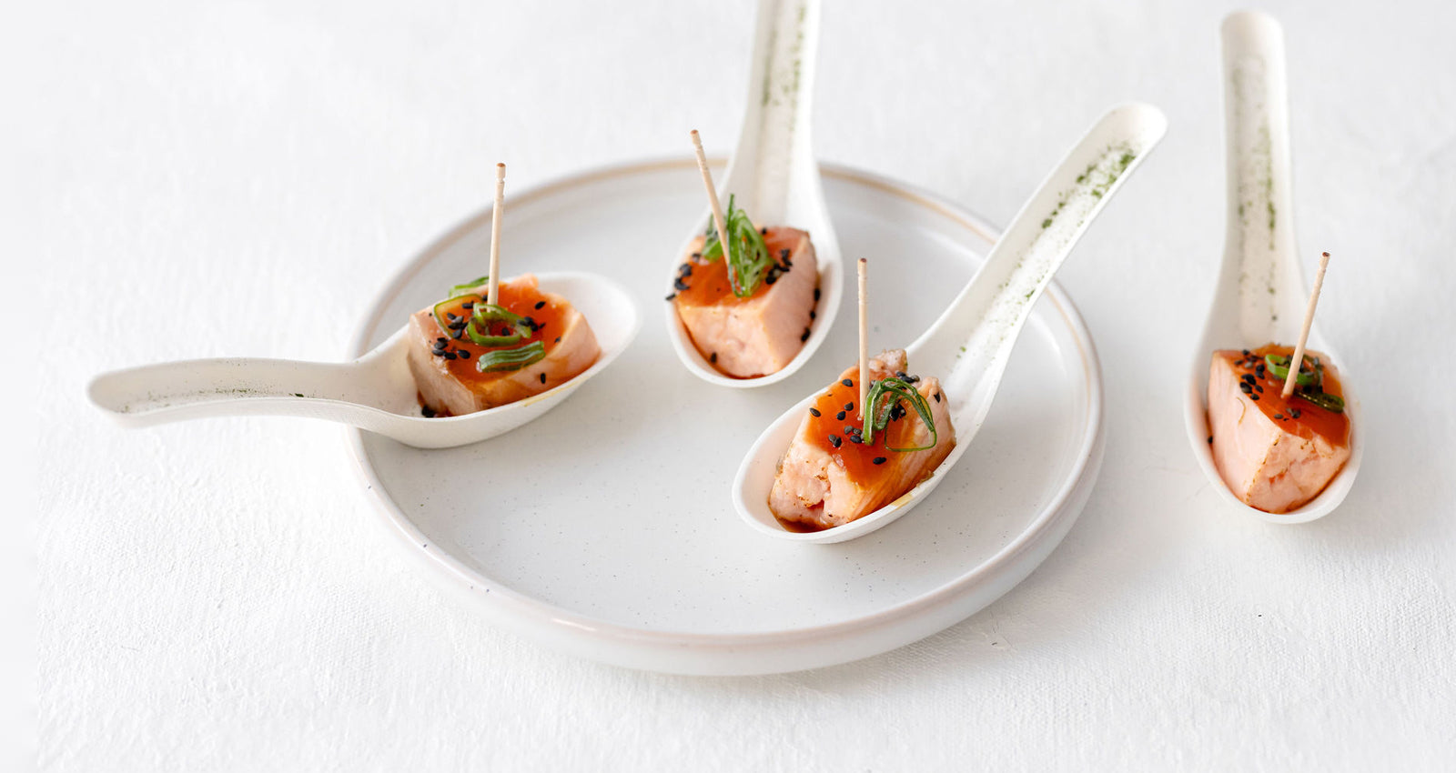 Lightly seared salmon with pickled ginger, black sesame and dried kombu.